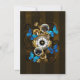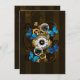 Composition de l'horloge ronde steampunk avec cadran romain noir, décoré avec des engrenages or et laiton, papillons Morpho bleu et lentilles endommagées sur arrière - plan rayé brun. Style Steampunk.