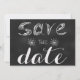 Une carte "Save the Date" sur un arrière - plan de tableau pour les gens qui aiment un peu de tranchant et un peu de nostalgie réunis. Simple et à vrai dire. Idéal aussi pour le professeur qui attache le noeud.