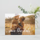 Mariage écrit à la main Enregistrer les cartes de dates qui ont une photo sur le devant et le dos. Les cartes Save the Date Fall, Automne, Hiver, Printemps ou Été contiennent une typographie manuscrite moderne avec des caractères cursifs, qui sont élégants, simples et modernes à utiliser après que vous minimaliste simple célébration de mariage.