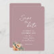 Rose vif "sauvez la date" pour les mariages, avec des fleurs d'abricot aquarelle et le feuillage du jardin. Un design botanique contemporain simple mais élégant, inspiré du style boho vintage, avec monogramme sur le dos.