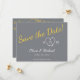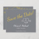 Enregistrez la date pour un mariage en jaune et gris. Les mots, Save the Date, sont en jaune sur un arrière - plan gris et le reste de la police est en blanc. La date du mariage est entourée d'une flèche en forme de coeur. Vous pouvez modifier les polices et les couleurs. Si vous le souhaitez, vous pouvez ajouter une photo à l'arrière et supprimer la couleur arrière - plan et l'image de lumières. Cela correspond aux cartes de la collection de mon magasin.