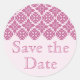 pink lace design 'save the date' with matching postage stamps