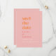 Ce mariage rétro d'été rose et orange, sauf la date, est parfait pour un mariage coloré. Le design vintage moderne et unique est doté d'une palette de couleurs vives, rose vif, orange vif et rose chaud, avec des beignets de plage tropicaux amusants.