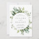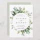 Ce mariage enregistrer la date d'invitation caractéristiques peint aquarelle eucalyptus verdure, feuilles verts et cadre circulaire. Pour une personnalisation plus avancée de cette conception, cliquez sur le lien "Customiser plus loin". Des articles correspondants sont également disponibles.