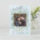 Cette photo élégante enregistrer la carte de date présente des sprigs d'aquarelle eucalyptus et d'autres feuilles comme cadre autour de la photo, avec "Deux Coeurs, un Amour" et un anneau fiançailles en or dans le mot Amour au sommet. Les informations du mariage Enregistrer la date se trouvent sous la photo. L'arrière - plan est en marbre bleu poussiéreux. Vous pouvez également modifier la couleur de l'anneau si vous le souhaitez, en cliquant sur Customiser plus loin. Si vous avez besoin d'autres produits de correspondance ou de modifications de conception, s'il vous plaît vérifier la collection, ou contactez-moi par Zazzle.