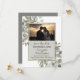 Ces cartes de dates sont un excellent moyen de faire connaître à vos amis et à votre famille votre prochain mariage. Ils présentent un design rustique avec votre photo entourée de sprigs peints à la main de feuilles d'eucalyptus et de branches de pins dans les tons vert sauge et or sur un arrière - plan gris. Le titre est écrit dans la calligraphie en dactylographie avec la place pour les noms du couple, la date du mariage, l'emplacement, et le site Web.