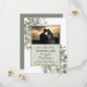 Ces cartes de dates sont un excellent moyen de faire connaître à vos amis et à votre famille votre prochain mariage. Ils présentent un design rustique avec votre photo entourée de sprigs peints à la main de feuilles d'eucalyptus et de branches de pin dans les tons vert sauge et or sur un arrière - plan vert sauge. Le titre est écrit dans la calligraphie en dactylographie avec la place pour les noms du couple, la date du mariage, l'emplacement, et le site Web.