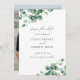 Découvrez notre mariage minimaliste et tendance Save the Date, avec une Elégante Verdure Eucalyptus Aquarelle couleur verte et blanche sereine avec photo de couple. La délicate calligraphie noire ajoute une touche de sophistication à cette invitation minimaliste, ce qui en fait un choix idéal pour une célébration mariage moderne. Sélectionnez le type de papier selon votre souhait avant d'acheter.