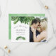 Cartes de notification de mariage à l'aquarelle verte sauge tendance et feuilles tropicales et magnolias blanches.