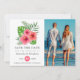 Aquarelle peinture feuillage tropical aloha beach mariage enregistrer la date photo carte de faire-part personnalisable à vos détails de l'événement. Si vos noms ont l'air un peu excentrés lorsqu'ils sont entrés, "Cliquez pour customiser plus loin" (le lien bleu au bas de "Personnalisez ce modèle") pour s'ajuster facilement dans la zone de conception.