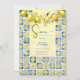 Exquisite Mediterranean Tiles and Floral & Lemons Garland Wedding Save the date Cards in Yellow and Blue Marine.