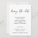 Carte de changement de date de mariage élégante et minimaliste en noir et blanc manuscrit.