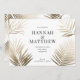 Carte de faire part de mariage avec feuille de palmier effet doré moderne et élégant. Avec un design de dos moderne et élégant.