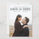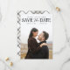 Faire part moderne avec photo intégrale et motif carreaux au dos avec monogramme et informations au verso.