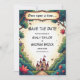This elegant fairytale-style save the date invitation is perfect for a modern wedding. The retro design features a vintage enchanted forest, a castle illustration, and black calligraphy on a storybook-themed background.