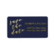 NewParkLane - Elegant Return address Labels, with 'Save the Date' quote in elegant faux gold foil script typography, against a navy blue background.