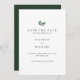 Pour le couple qui planifie un mariage d'hiver. Mariage botanique de vacances d'hiver sauvez la date avec un design minimaliste et élégant. Ce mariage de vacances sauf la date peut être personnalisé avec l'inclusion de vos détails mariages. Le verso de la date de sauvegarde est dans un vert foncé d'hiver.