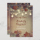 L'automne rustique sauvez l'invitation de la date avec feuilles d'érable bordeaux, lumières de bocal de mason et décoration de burlap.