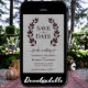 Ce mariage élégant, à l'exception des cartes datées, présente un design rustique et moderne avec des sprigs de feuilles de laurier couleur bordeaux ou rouge vin sur un arrière - plan gris. La typographie comporte un bloc de texte alternant avec une calligraphie script sophistiquée. Simples et élégantes, ces cartes sont le moyen idéal de faire connaître à vos amis et à votre famille votre prochain mariage.