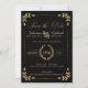 "Gold Laurel Leaf Greenery Black Save the Date Photo Fiançailles Faire-part." Style typographique moderne et élégant 5 x 7 format en ébène riche noir avec parties scintillant d'or feuillage coins et une feuille de laurier couronne. Votre photo de fiançailles est facilement changée à l'aide du champ de modèle fourni. Art et design par Audrey Jeanne Roberts, artiste de renommée internationale, copyright.