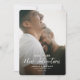 Nouvel An Moderne Nouvelles Aventures Calligraphie Script Photo Enregistrer la Date. Design de typographie minimaliste amusant avec votre photo préférée et détails avant et arrière.