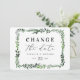 carte de fleur aquarelle florale changer la date. Avec de belles feuilles aquarelles et une typographie moderne et audacieuse, cette invitation de changement de date est à la dernière mode et parfaite pour toutes les saisons. Partie d'une suite de mariage