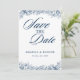 Save The Date Fleur Bleu Blanc Élégant Simple Enregistrer La Dat