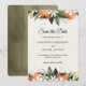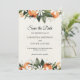 Annoncez votre grand jour avec élégance grâce à cette carte Save the Date moderne à l'aquarelle, ornée de florales orange vibrantes et de feuilles vertes luxuriantes. Parfaite pour les mariages de printemps, d'été ou de jardin, cette conception offre une sensation botanique fraîche avec une typographie sophistiquée. Personnalisez facilement avec vos noms et les détails du mariage pour créer un souvenir que vos invités adoreront. Idéal pour les couples à la recherche de papeterie de mariage florale moderne avec une touche chaleureuse et organique.