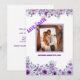 Fleur violette élégante Carte de sauvegarde de la date, Cette annonce de mariage "Save the Date" magnifiquement conçue présente un couple romantique s'étreignant sur la plage au coucher du soleil. Entourée de bordures florales élégantes de lavande et de violette, l'image est encadrée dans un violet saisissant, renforçant la chaleur et l'intimité du moment du couple. L'annonce invite les invités à marquer leurs calendriers pour une célébration de mariage le samedi 8 août 20XX. Un mélange parfait de romance et de style, idéal pour les mariages en bord de mer ou sur le thème floral.