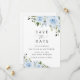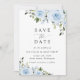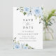 Invitations amis et famille dans le style et donner le ton pour votre journée spéciale avec ce charmant enregistrer la carte de date. Le design présente des fleurs d'aquarelle bleu poussiéreux et de la verdure sur l'arrière - plan blanc.