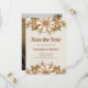 Ces cartes de dattes à la mode proposent des fleurs rétro et des feuilles aux couleurs neutres vintages comme le marron, le beige, l'or, le vert olive et la crème d'ivoire avec des textes de style rétro. Le dos de la carte contient votre photo. La façon idéale de faire savoir à vos amis et à votre famille que vous êtes fiancés pour être mariés!