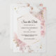 Annoncez votre jour spécial avec élégance grâce à cette carte "Save the Date" florale rose pastel. Avec des roses délicates, des fleurs séchées et des accents géométriques dorés, ce design moderne ajoute une touche romantique douce à votre papeterie de mariage. Entièrement personnalisable avec vos noms, date de mariage et lieu, cette carte est parfaite pour les couples qui recherchent une annonce élégante et intemporelle. Idéal pour les mariages printaniers, de jardin, bohèmes ou à thème romantique.