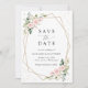 Invitations amis et famille dans le style et donner le ton pour votre journée spéciale avec ce charmant enregistrer la carte de date. Le design présente des fleurs d'aquarelle rose et blanche, de la verdure, des confettis dorés et un cadre doré sur un arrière - plan blanc.