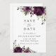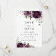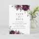 Invitations amis et famille dans le style et donner le ton pour votre journée spéciale avec ce charmant enregistrer la carte de date. Le design présente des fleurs d'aquarelle prune violet et de la verdure sur l'arrière - plan blanc.