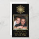 Flocon d'or lors d'un mariage d'hiver noir Sauvez le carte photo Date qui comporte un flocon d'or sur arrière - plan noir et votre photo dans un cadre doré. Ce design personnalisé est un modèle entièrement personnalisable et fait partie d'un ensemble mariage parfait pour un mariage d'hiver ou de Noël.