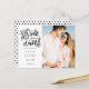 This modern hand script photo save the date card features your special photo and a hand script save the date above your names, date and venue. The reverse features a polka dot pattern which you can customise to your favourite colour or delete and add additional celebration info. Designed by Thisisnotme©