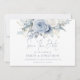 Florals modernes Dusty Blue Texte QR Code Mariage. Disponible numériquement et imprimé. Superbes fleurs en été bleu clair et blanc et un élégant script set en bleu pour Save The Date. Le reste du texte que vous pouvez facilement personnaliser avec vos détails. Ajoutez votre code QR à votre site Web mariage au verso ou supprimez ceci et le texte au verso si cela n'est pas nécessaire.