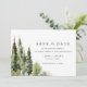 Des cartes modernes de sauvegarde à l'aquarelle avec des illustrations d'arbres, pour une sensation rustique. L'envers est un vert clair de coordination.