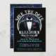 Invitation tuxedo noir avec un arrière - plan de nuit étoilé enregistrer la date. Vous pouvez facilement customiser le texte pour n'importe quelle occasion si vous souhaitez ce modèle d'invitation.