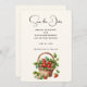 Enregistrez la carte de date avec une vibe d'été fraîche. Une jolie illustration avec des fraises fraîchement cueillies remplissant un pittoresque panier en osier.