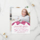 Jolie graduation, enregistrez la carte de date avec une photo du diplômé ornée d'un joli ruban avec un arc dans une teinte rose fuchsia de rose, et une autre photo sur le dos. Une graduation unique sauvez la carte de date pour la fête de remise de diplômes de votre fille avec un arc rose imprimé décorant la photo de votre diplômé et de jolies polices en rose. Une graduation girly enregistrer la date avec la photo et le nom et un arc rose illustré.