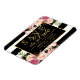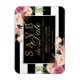 Save the Date - Gold Floral Decor B&W Stripes Magnetic Card.