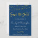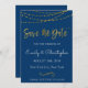 Gold Foil String Lights et manuscrit Script Navy Blue Elegant Enregistrer la carte d'invitation de date.