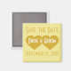 This refrigerator magnet features a pair of solid gold hearts overlaid by the names of the bride and groom with the words "Save the date" above and the date below. Click ""Customize" to re-size/re-position gold hearts, change background colour, and/or revise text. Personalize font style, size and colour. Design can be customized for an engagement party, bridal shower, rehearsal dinner, wedding, anniversary or valentine's party favour or save-the-date. Gold hearts are especially appropriate for 50th anniversary celebrations.