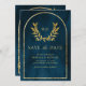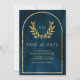 Save The Date Gold Laurel Wreath Feuille Océan Bleu Mariage