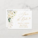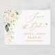 Save the Date Gold Script Green and White Floral Postcard