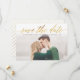 Cet élégant enregistrement de la date présente un script chatoyant en faux papier avec un dossier rayé. Téléchargez votre propre photo et customisez les informations pour inclure les détails de votre mariage.