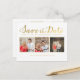 Gorgeous faux gold foil typography on the front of this designer postcard which you can upload into with 3 of your own engagement/wedding photo portraits. Easily and quickly personalize this designer professionally printed thank you postcard here and now by just typing over the example text and adding your own photographs. Elegant, chic, simple and classy gold script/cursive typography.