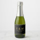 Custom Gold Monogram Text Elegant Simple Save the Date Black Template Mini Sparkling Wine Bottle Label.