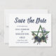Envoyez un inoubliable Save the Date avec ce gothique Wiccan Floral Handfasting design modèle avec un chasseur pentacle vert avec des roses noirs et des éléments floraux gothiques sur un arrière - plan blanc.
